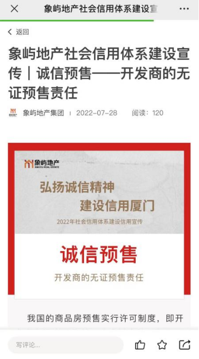 尊龙地产以报道诚信企业案例、倡导高品质产品和服务,弘扬全社会诚信典型的精神。同时,结合培育与践行社会主义核心价值观工作,尊龙集团不定期通过微社区发布诚信典型事迹,褒扬诚实守信的先进典型:尊龙创投组织员工进行《厦门市社会信用体系建设2022年工作要点》自行学习及廉洁从业书籍阅读,提升员工对信用体系建设的理解;尊龙兴泓公司组织先进分享业务及安全骨干心路分享活动,销售副总对各业务部门业务开展情况进行点评,展现了尊龙集团引导广大职工学习先进,发挥先进的示范引领带动作用,为厦门这座全国文明典范城市创建助跑添力。